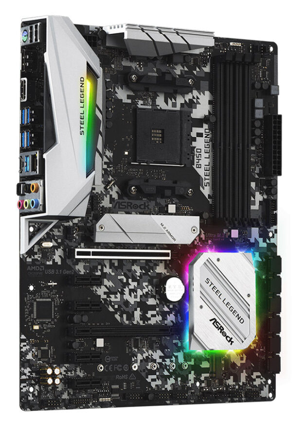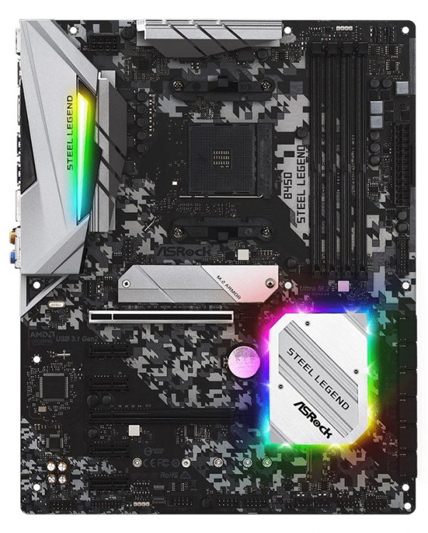 Материнская плата ASRock B450 STEEL LEGEND [AM4, AMD B450, 4xDDR 4, 2xM.2, 2xPCI-E x16, Standard-ATX