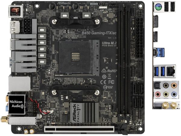 Материнская плата ASRock B450 GAMING-ITX/AC AM4 2xDDR4 4xSATA3 M.2 HDMI DP M-ITX